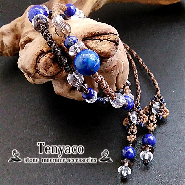 スモーキークォーツとクリスタルクォーツを添えて丁寧に編み上げました。