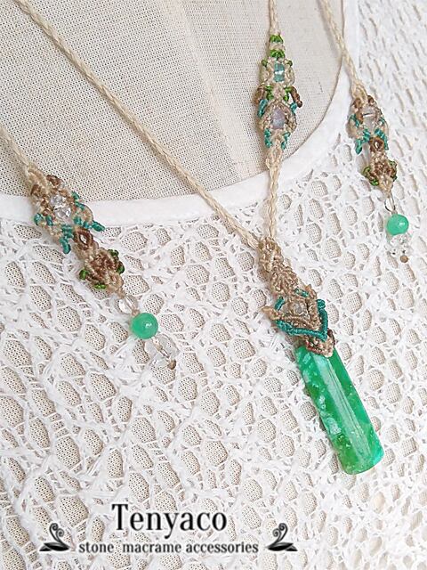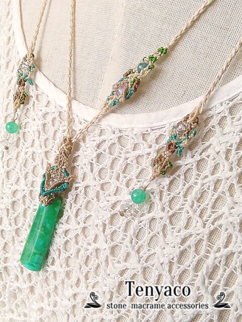 オーストラリア産のクリソプレーズ原石を自家研磨してスティックルースペンダントに仕上げました。