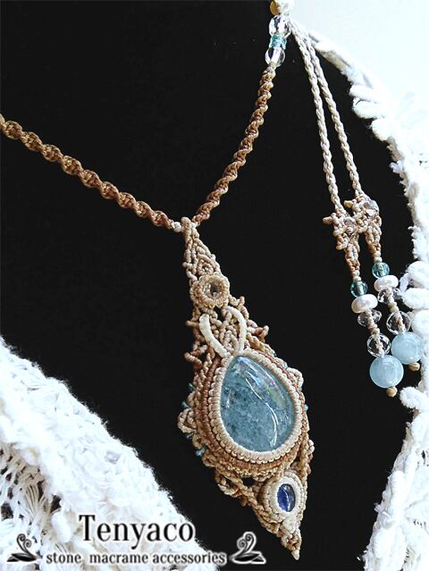 アクアマリンとネパール産カイヤナイトのデザインマクラメペンダント