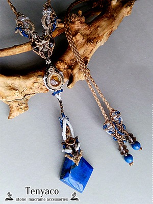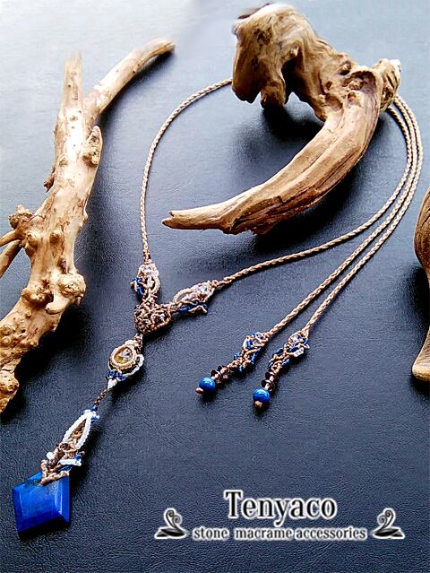 自家研磨ラピスラズリとシトリンのマクラメペンダント