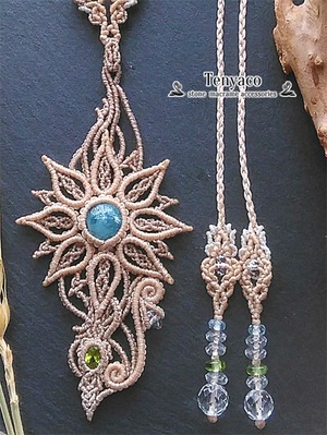 ディープアクアマリンとペリドットの天華モチーフペンダント