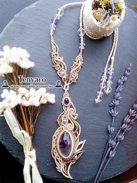 フローライトとアメジスト&ペリドットのマクラメペンダント