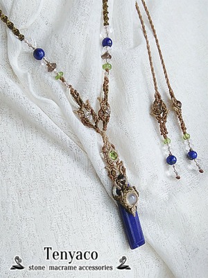ラピスラズリとムーンストーン&ペリドットのマクラメペンダント