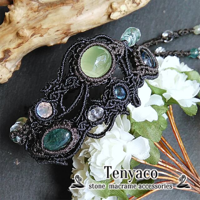 プレナイトとブルーアパタイトのマクラメブレスレット