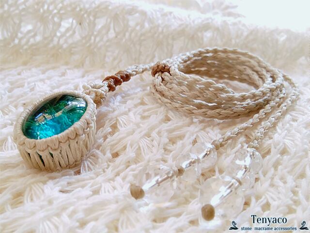 エメラルドグリーンの南海を結晶にしたようなクリソコーラのダブレットルースマクラメペンダント。
