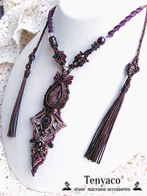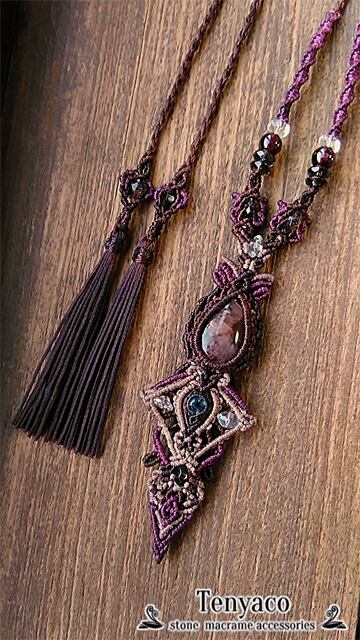 アンダリュサイトとブルースピネルのマクラメペンダント